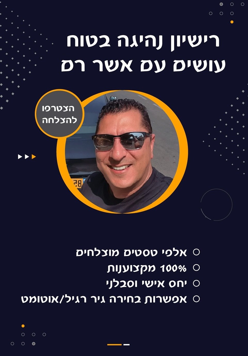 ✅ רישיון נהיגה על גיר ידני ואוטומטי