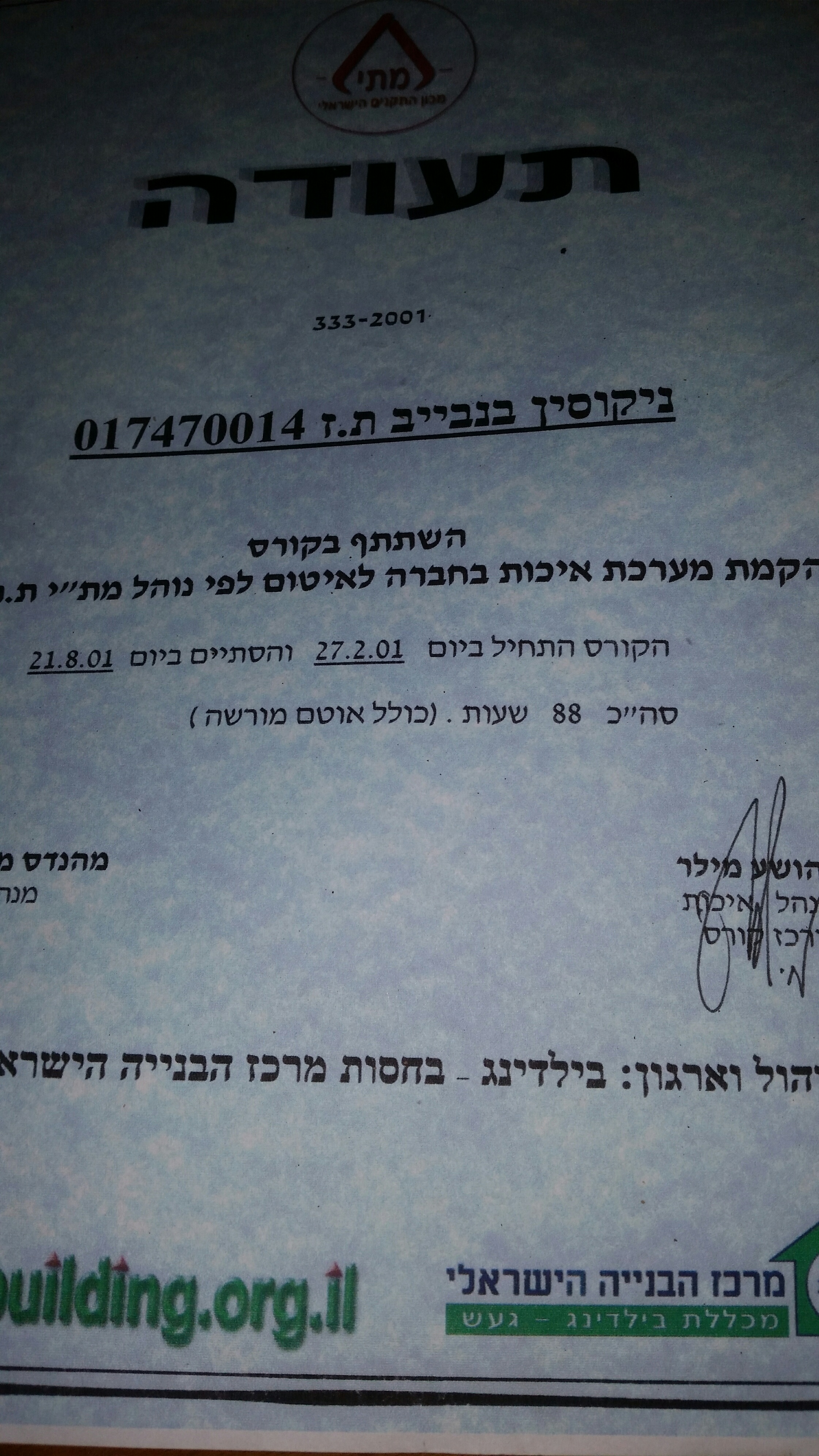 ניק קבלן רשום שזכה בתואר המקצוען מס 1 לשנת 2016 בקרב הגולשים. חברת איטום מקצועית, המבצעת עבודות ברחבי הארץ ובעולם. החברה היא קבלן איטום מורשה מטעם "פזקר" ו"ביטום", ומתמחה באיטום גגות, איטום תפרים, איטום בריכות והתזת מרתפים ומקלטים. שירות החברה ניתן במספר שפות, עברית, רוסית, אנגלית וספרדית, לנוחות הלקוחות. אנו מבטיחים לכם תוצאה מושלמת ואיטום מוחלט מפגעי מזג האוויר, קור וגשם. אנו מספקים שירותי קבלן איטום למוסדות ממשלה, תעשייה, קבלנים ולקוחות פרטיים.