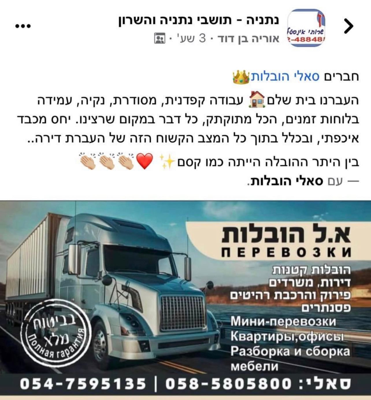 ההובלה, תוך הקפדה על סטנדרטים גבוהים של מקצועיות ואחריות.