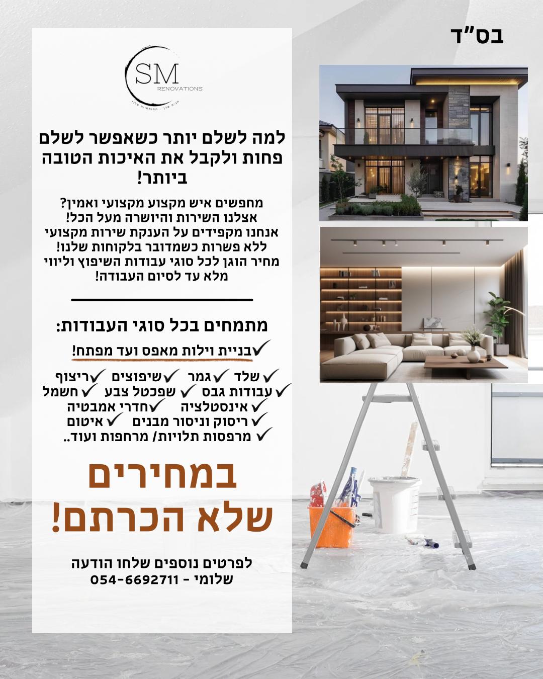מתכננים פרויקט בנייה או שיפוץ? בואו נדבר על זה - שלומי 054-6692711 ייתן לכם את כל הפרטים והצעת מחיר מדויקת
