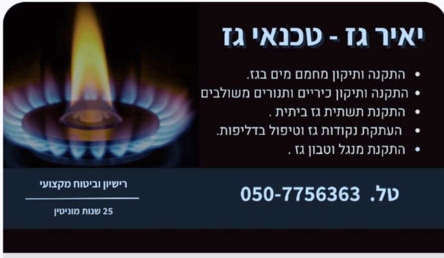 מידע נוסף על יאיר גז- טכנאי גז מורשה