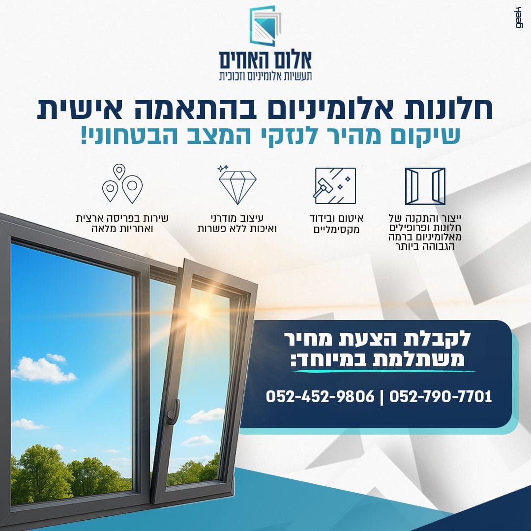 אלום האחים מתמחה בתעשיות אלומיניום וחלונות ומציעה פתרונות מקיפים המשלבים בין מומחיות טכנית לשירות איכותי. העסק פועל בהתאמה מלאה לצרכי הלקוח תוך שמירה על סטנדרטים גבוהים בכל שלב. הגישה המקצועית מתבטאת בתשומת לב לפרטים הקטנים ביותר ובהבנה עמוקה של דרישות השוק המודרני. הצוות עומד לרשות הלקוחות לאורך כל התהליך ומספק מענה מדויק ויעיל.